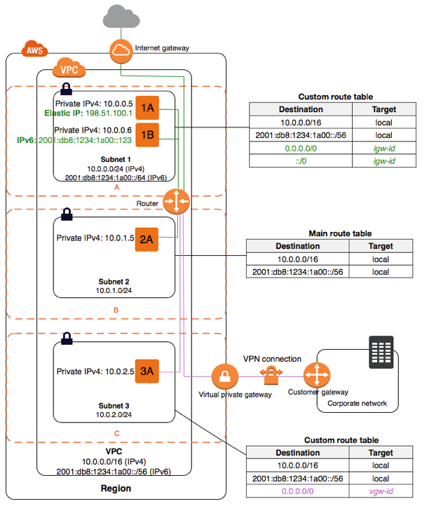 - AWS의 가용영역에 의해 subnet이 나눠진다.